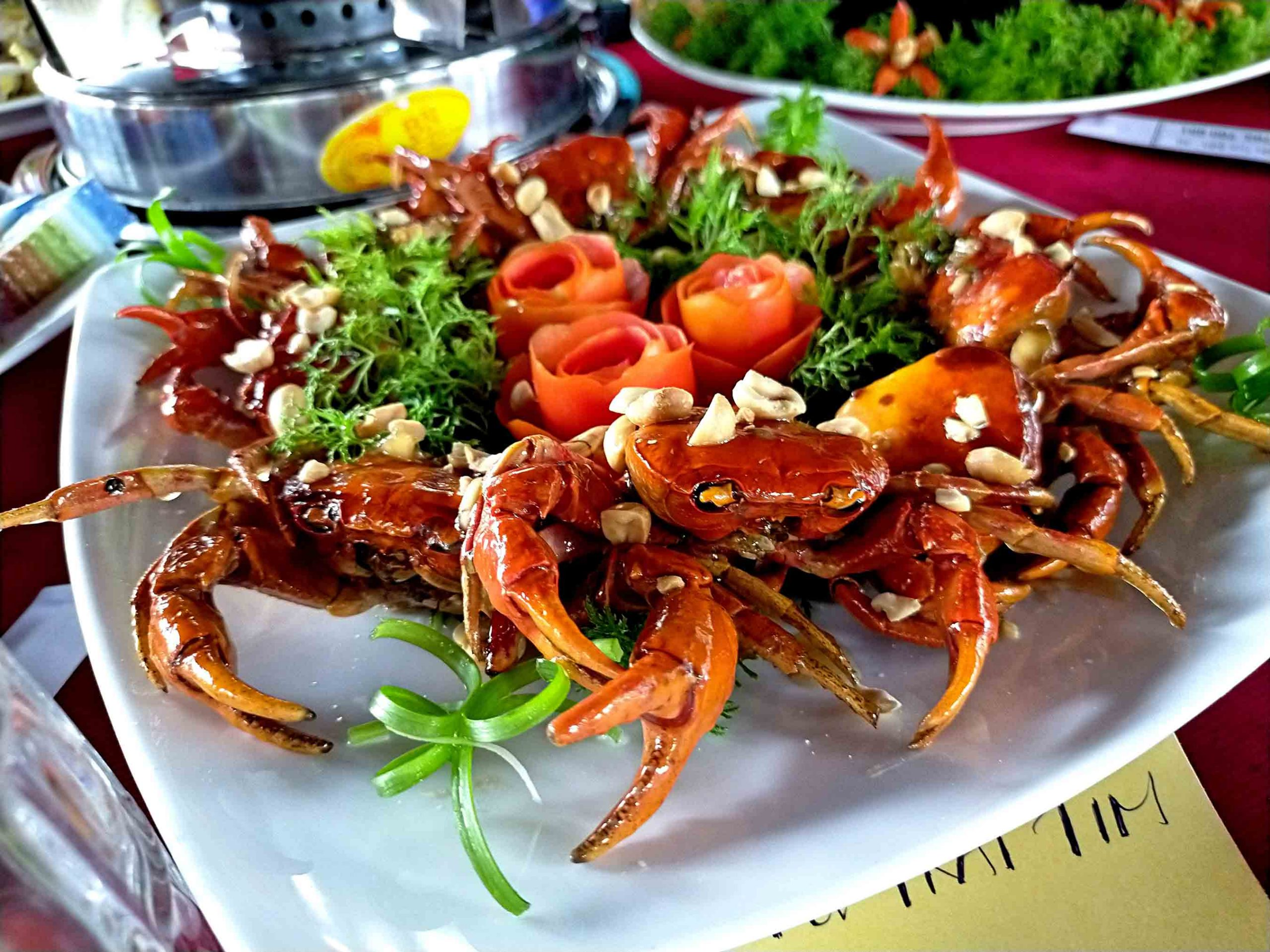 | 4.Cua núi rang me | Cua núi ở đây có kích thước khá to, đặc biệt là yếm cua có màu tím đẹp mắt. Thịt cua núi Cấm được đánh giá cao về chất lượng, với hương vị thơm ngon, béo ngậy. Yếm cua mềm mại, giòn và không hề có mùi hôi cỏ như cua đồng. Cua núi thường được chế biến thành nhiều món ăn hấp dẫn như luộc, rang muối, hấp sả… nhưng ngon nhất vẫn là rang me. | ![]() |
